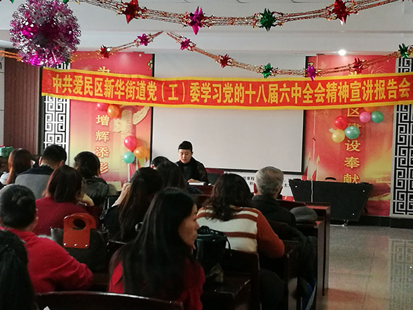 2017年1月6日下午1:30分,集團公司黨委副書記、常務副總王偉應中共愛民區新華街道黨(工)委的邀請,赴北山社區,為轄區黨員們解讀《關于新形式下黨內政治生活的若干準則》和《中國共產黨黨內監督條例》兩項內容。通過王偉書記理論聯系實際的生動解讀,使與會黨員深刻體會到:黨員的政治生活,只有抓好思想教育這個根本,才能教育黨員筑牢信仰之基,補足精神之鈣,把穩思想之舵,只有抓好嚴明紀律這個關鍵,才能把紀律規矩立起來、嚴起來,切實扎緊織密制度的籠子。通過王偉書記對《準則》和《條例》的解讀,與會黨員進一步增強了“四個意識”特別是核心意識、看齊意識,更加堅定在思想上政治上行動上同以習近平同志為核心的黨中央保持高度一致,以優異的成績迎接黨的十九大的召開,以更加昂揚向上的姿態為實現“兩個一百年”奮斗目標、實現中華民族偉大復興的中國夢而不懈奮斗!