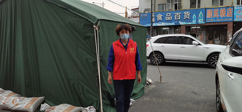 于是,她花了1200元,買個帳篷,在工地做了幾根釬子,請公司項目經理派兩個人帶著工具,把帳棚固定在小區門口。