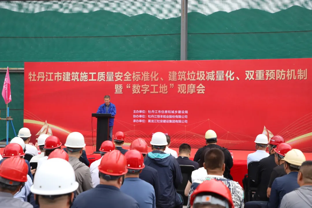 6月21日,由市住房和城鄉建設局主辦,黑龍江牡安建設集團承辦的“牡丹江市建筑施工質量安全標準化、建筑垃圾減量化、雙重預防機制暨數字工地觀摩會”在牡安集團承建的恒豐紙業項目隆重舉行。市住建局副局長畢傳鵬、市工程質量技術服務中心主任孫勇、黑龍江牡安建設集團董事長、總經理張秋以及市住建局、各縣(市)、開發區住建局、質量安全中心(站)的有關領導、市區在建項目的各位同仁參加了本次活動。