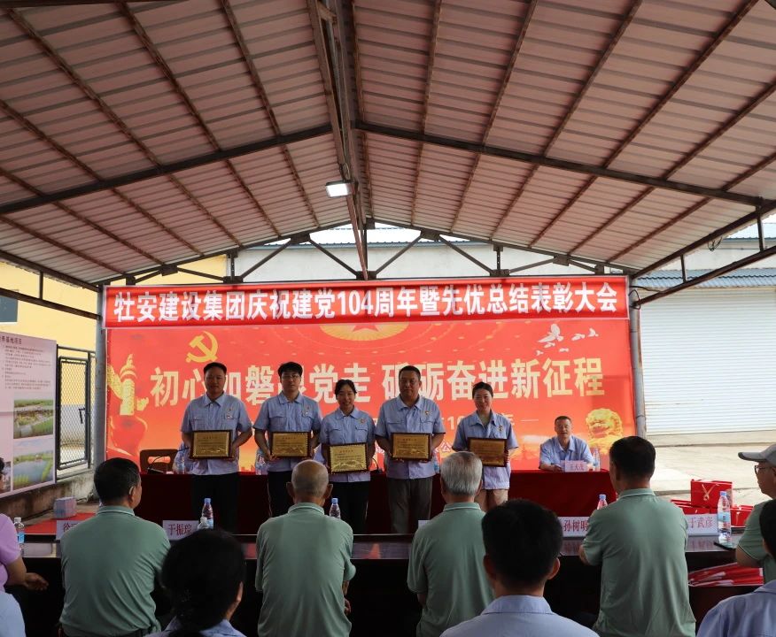 2025 年 6 月 29 日上午,中共黑龍江牡安建設集團委員會在豐收村康養基地項目舉行了以“初心如磐跟黨走 砥礪奮進新征程” 為主題的慶祝中國共產黨建黨 104 周年活動。原公司老領導、老干部、老黨員,集團黨政班子成員,部分優秀黨員;集團公司直屬分公司負責人及直屬項目部負責人,參加了此次主題活動。活動由集團黨委副書記、副總經理劉群主持。
