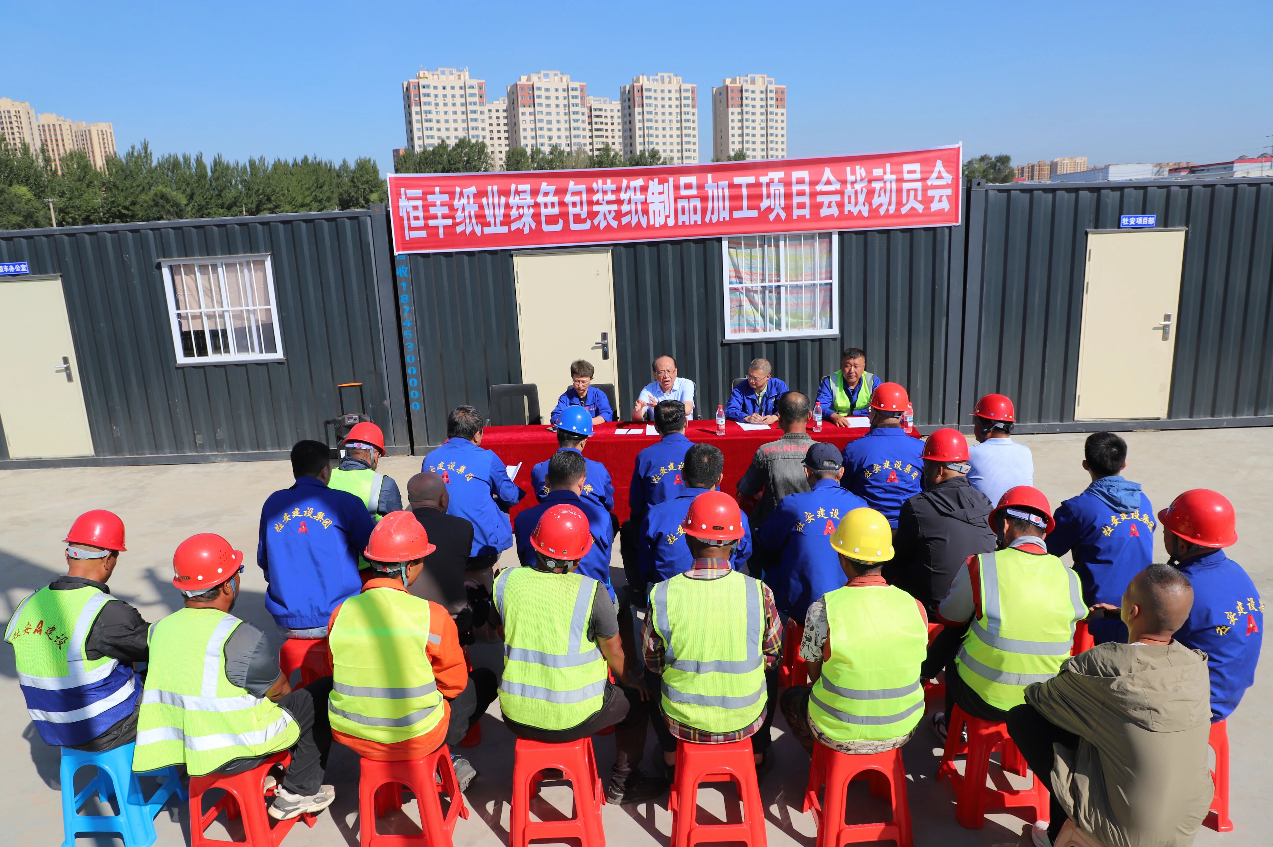 2025 年 9 月 11 日,公司在恒豐項(xiàng)目部召開(kāi)恒豐紙業(yè)綠色包裝紙制品加工項(xiàng)目會(huì)戰(zhàn)動(dòng)員會(huì)。本次會(huì)議旨在凝聚全員力量、明確工作方向,為項(xiàng)目會(huì)戰(zhàn)吹響沖鋒號(hào)角,會(huì)議由公司副總經(jīng)理王天茂主持。
